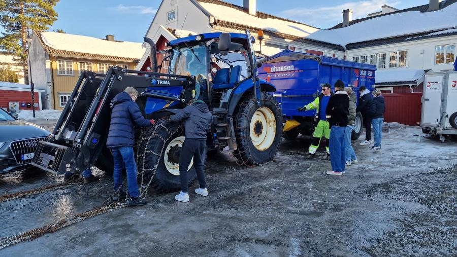 Det er også teoriundervisning som vi kaller "Grunnkurs traktor" som foregår over 4 timer. Her lærer vi masse om traktoren sine muligheter og ikke minst begrensninger i trafikken, sikkerhetskontroll av traktor og henger samt at vi gjennomgår praktisk pålegging av kjetting.